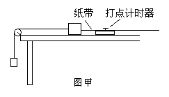 实验装置如图甲所示,一木块放在水平长木板上,左侧拴有一细软线,跨过固定在木板边缘的滑轮与一重物相连,木块右侧通过纸带打点与计时器相连。在重物的牵引下,木块在木板上向左加速运动。图乙给出了重物落地前,打点计时器在纸带上打出的一些点(单位:cm)。