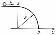速度运动到 A点时遇到一段半径为R的1/4圆弧曲面AB后,落到水平地面的C点,已