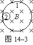 一个静止的放射性原子核发生天然衰变时,在匀强磁场中得到内切圆的两条变经,如图14–3所示,两圆半径之比为44∶1,则下列说法中,正确的是: