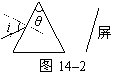 11.某三棱镜的顶角θ=41°14′,折射率n如下表所示。一束白光以较大的入射角通过棱镜后,在光屏上形成从紫到红的彩色光带,如图14–2所示。当入射角i逐渐减小到零的过程中,屏上彩色光带的变化情况是(sin41°14′=0.6592)