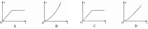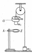 如右图所示装置中,光滑的定滑轮固定在高处,用细线跨过该滑轮,细线两端各拴一个质量相等的砝码m1和m2.在铁架上A处固定环状支架Z,它的孔能让m1通过.在m1上加一个槽码m,由O点释放向下做匀加速直线运动.当它们到达A时槽码m被支架Z托住,m1继续下降.下列能正确表示m1运动速度v与时间t和位移s与时间t关系图象的是
