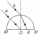 (2)另一条与a平行的光线b从最高点入射玻璃砖后,折射到MN上的d点,则这根光线能否从MN射出?Od为多少?