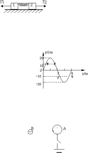 2.放在光滑水平面上的物块1、2用轻质弹簧秤相连,如图所示。今对物块1、2分别施以相反的水平力Fl、F2,且Fl大于F2,则弹簧秤的示数 ( )