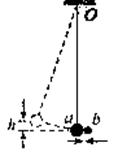 如图所示的单摆,摆球a向右摆动到最低点时,恰好与一沿水平方向向左运动的粘性小球b发生碰撞,并粘在一起,且摆动平面不变。已知碰撞前a球摆动的最高点与最低点的高度差为h,摆动的周期为T,a球质量是b球质量的5倍,碰撞前a球在最低点的速度是b球速度的一半。则碰撞后 ( )