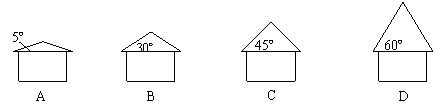 一间新房即将建成时要封顶,考虑到下雨时落至房顶的雨滴能尽快地淌离房顶,要设计好房顶的坡度,设雨滴沿房顶下淌时做无初速度无摩擦的运动,那么,如图所示的四种情况中最符合要求的是( )