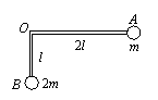 3、质量不计的直角形支架两端分别连接质量为m和2m的小球A和B。支架的两直角边长度分别为2l和l,支架可绕固定轴O在竖直平面内无摩擦转动,如图所示。开始时OA边处于水平位置,由静止释放,则[ ]