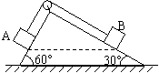 如图所示,一直角斜面体固定在水平地面上,左侧斜面倾角为60°,右侧斜面倾角为30°。A、B两个物体分别系于一根跨过定滑轮的轻绳两端且分别置于斜面上,两物体下边缘位于同一高度且处于平衡状态,滑轮两边的轻绳都平行于斜面。不考虑所有的摩擦,当剪断轻绳让物体从静止开始沿斜面滑下,则两物体的质量之比mA:mB是 ;着地瞬间两物体所受重力做功的功率之比PA:PB是