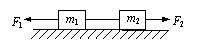 如图所示,两个用轻线相连的位于光滑水平面上的物块,质量分别为m1和m2,拉力F1和F2方向相反,与轻线沿同一水平直线,且F1>F2。试求在两个物块运动过程中轻线的拉力T。