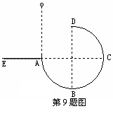 如图所示,固定在竖直平面内的光滑圆轨道ABCD,其A点与圆心等高,D点为轨道最高点,AC为圆弧的一条水平直径,AE为水平面。今使小球自A