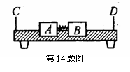 (e)按下电钮放开卡销,同时使分别记录滑块A、B运动时间的计时器开始工作.当滑块A、B分别碰撞挡板C、D时停止计时,计下滑块A、B分别到达挡板C、D的运动时间t1和t2。