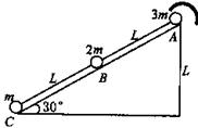 如图所示,质量分别为3m、2m、m的三个小球A、B、C用两根长为L的轻绳相连,置于倾角为30°、高为L的固定光滑斜面上,A球恰能从斜面顶端外竖直落下,弧形挡板使小球只能竖直向下运动,小球落地后均不再反弹.由静止开始释放它们,不计所有摩擦,求: