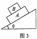 如图(3)所示,倾角为θ的固定斜面充分长,一质量为m上表面光滑的足够长的长方形木板A正以速度v0沿斜面匀速下滑,某时刻将质量为2m的小滑块B无初速度地放在木板A上,则在滑块与木板都在滑动的过程中( )
