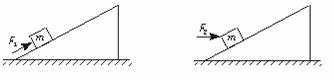 21. 如图所示,分别用两个恒力F1和F2先后两次将质量为m的物体从静止开始,沿着同一个粗糙的固定斜面由底端推到顶端,第一次力F1的方向沿斜面向上,第二次力F2的方向沿水平向右,两次所用时间相同.在这两个过程中