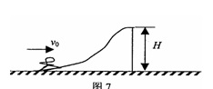 23.(15分)如图(7)所示,摩托车演员作特技表演,当到达高台底端时关闭油门,从底端以初速度v0=20m/s冲上顶部水平的高台,然后从顶部水平飞出(不计空气阻力),摩托车和人落到缓冲垫上(图中未画出),摩托车落地速度大小为