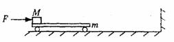 17.(16分)光滑水平地面上停放着一辆质量m=2kg的平板车,质量M=4kg可视为质点的小滑块静放在车左端,滑块与平板车之间的动摩擦因数μ=0.3,如图扭不,一水平向右的推力F=24N作用在滑块M上0.5s撤去,平板车继续向右运动一段时间后竖直墙壁发生碰撞,设滑块与平板车间的最大静摩擦力与滑动摩擦力大小相等,平板车足够长,以至滑块不会从平板车右端滑落,g取10m/s2,求:
