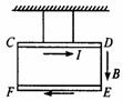 (10分)如图所示,CD、FE是两个长度均为40 cm、质量分别为60 g、20 g的两个金属棒,两端由两根等长的细金属杆相连(不计杆重力),形成闭合回路CDEF,将整个回路用两根绝缘细线悬于天花板上,使两棒保持水平并处于竖直向下的匀强磁场中,磁感应强度为B=1 T.在闭合回路CDEF中通以如图所示的电流,电流I=0.5 A,待系统稳定后,取