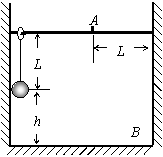 (12分)如图所示,细绳长为L,吊一个质量为m的铁球(可视作质点),球离地的高度h=2L,当绳受到大小为2mg的拉力时就会断裂.绳的上端系一