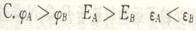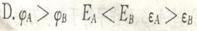 AB是某电场中一条电场线上的两点,一正电荷仅在电场力作用下从A点运动到B点,运动过程中的速度一时间图像如图所示,比较A、B两点电势φ的高低、场强E的大小及电荷的电势能ε,下列说法正确的是 ( )