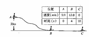 13. (10分)如图8所示,某人乘雪橇从雪坡经A点滑至B点,接着沿水平路面滑至C点停止.人与雪橇的总质量为70kg.表中记录了沿坡滑下过程中的有关数据,请根据图表中的数据解决下列问题: