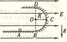 15 (18分).如图所示,ABCD为表示竖立放在场强为E=104V/m的水平匀强电场中的绝缘光滑轨道:其中轨道的BCD部分是半径为R的半圆环,轨道的水平部分与半圆环相切,A为水平轨道的一点,而且AB=R=0.2m把一质量m=100g、带电q=10-4C的小球,放在水平轨道的A点上面由静止开始被释放后,在轨道的内侧运动。(g取10m/s2)求: