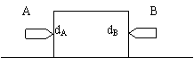 在光滑的水平面上,静止着长为L的方木块M,现有A、B两颗子弹,沿同一轴线,以水平速度VA、VB且VA<VB从M两侧同时射入方木块,A、B在木块中嵌入的深度分别为dA、dB,dA+dB<L,而木块却一直保持静止,如图所示。则:( )