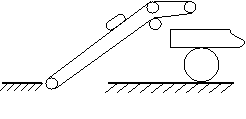 (14分)如图所示为皮带传输机简图,其顶端为水平且高度为3m。将质量为50kg的货物由静止放上皮带,运动至顶端后抛至高度为2.2m的平板车,落点与抛出点间水平距离为0.8m。求在输送货物期间皮带对货物做的功(g=10m/s2)