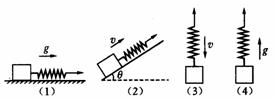 9.如图所示,四根相同的轻质弹簧连着相同的物体,在外力作用下做不同的运动:(1)在光滑水平面上做加速度大小为g的匀加速直线运动;(2)在光滑斜面上做向上的匀速直线运动;(3)做竖直向下的匀速直线运动,(4)做竖直向上的加速度大小为g的匀加速直线运动.设四根弹簧伸长量分别为