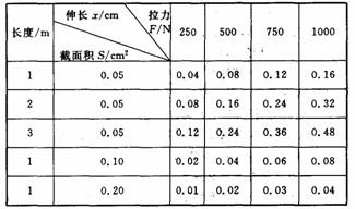12.用金属制成的线材(如纲丝、钢筋)受到的拉力会伸长,17世纪英国物理学家胡克发现,金属丝或金属杆在弹性限度内的伸长与拉力成正比,这就是著名的胡克定律.这个发现为后人对材料的研究奠定了重要的基础.现有一根用新材料制成的金属杆,长为4m,横截面积为0. 8 cm2,设计要求它受到拉力后的伸长不超过原长的1/1 000,由于这一拉力很大,杆又较长,直接测试有困难,就选用同种材料制成样品进行测试,通过测试取得数据如下: