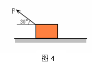 如图4所示,物体受到的水平方向成30o角拉力F作用向左作匀速直线运动,则物体受到的拉力F与地面对物体的摩擦力的合力的方向是( )