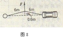 (12分)为了把陷在泥坑里的汽车拉出来,司机用一条结实的绳子把汽车拴在一棵大树上,开始时相距12m,然后在绳的中点用400N的力F,沿与绳垂直的方向拉绳,如果中点被匀速拉过60cm,如图8所示,假设绳子的伸长可以不计,求汽车受到的拉力。