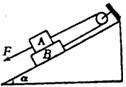 (16分)在图中所示的装置中,斜面与水平成30°角,A的质量是10kg,A与B之间的动摩擦因数为0.1,B的质量为20kg,B与斜面之间的动摩擦因数为0.2,为使B沿斜面向上匀速运动,至少应当用多大的力F沿斜面方向向下拉A?(g取10m/s2)