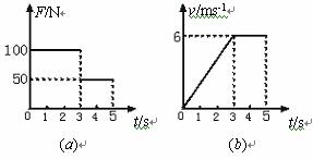 一只木箱在水平地面上受到水平推力F作用,在5 s时间内F的变化和木箱速度变化如图中(a)、(b)所示,则木箱的质量为_____ kg,木箱与地面间的动摩擦因数为_____.