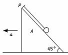 17.如图所示,一细线的一端固定于倾角为45°的光滑楔形滑块A的顶端P处. 细线的另一端拴一质量为m的小球,当滑块至少以a=_______向左运动时,小球对滑块的压力等于零,当滑块以a=2g的加速度向左运动时,线中拉力T=_______.
