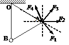 如图所示,用两根细线把A、B两小球悬挂在天花板上的同一点O,并用第三根细线连接A、B两小球,然后用某个力F作用在小球A上,使三根细线均处于直线状态,且OB细线恰好沿竖直方向,两小球均处于静止状态.则该力可能为图中的( )