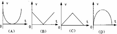 3、将一物体以某一初速竖直上抛,在下图所示的四幅图中,能正确表示物体在整个运动过程中的速率v与时间t的关系(不计空气阻力)的图是:( )