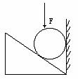 一光滑球夹在竖直墙与放在水平面上的楔形木块间,处于静止。若对光滑球施一个方向竖直向下的力F,如图所示,整个装置仍处于静止,则与施力F前相比较:( )