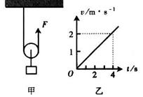 如图甲所示,滑轮质量、摩擦均不计,质量为2kg的物体在F作用下由静止开始向上做匀加速运动,其速度随时间的变化关系如图乙所示,由此可知( )(g取10m/s2)