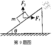 9.如图所示,在倾角为θ的固定光滑斜面上,质量为m的物体受外力F1和F2的作用,F1方向水平向右,F2方向竖直向上。若物体静止在斜面上,则下列关系正确的是