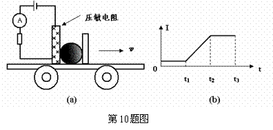 压敏电阻的阻值随所受压力的增大而减小,有位同学利用压敏电阻设计了判断小车运动状态的装置,其工作原理如图a所示,将压敏电阻和一块挡板固定在绝缘小车上,中间放置一个绝缘重球。小车向右做直线运动过程中,电流表示数如图b所示,下列判断正确的是