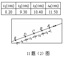 (2)一小球沿光滑斜面向下运动,用每隔0.1s曝光一次的频闪照相机拍摄下不同时刻小球的位置照片如图所示,选小球的五个连续位置A、B、C、D、E进行测量,测得距离s1、s2、s3、s4的数据如表格所示。(保留三位有效数字)
