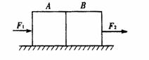 (17分)如图所示,质量分别为m1=1kg和m 2=2kg的A、B两物块并排放在光滑水平面上,若对A、B分别施加大小随时间变化的水平外力F1和F2,若F1=(9-2t)N,F2=(3+2t)N,则: