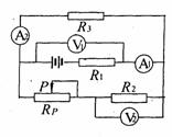 C.若调节滑动变阻器Rp时,电压表V2示数始终为零,其它三个电表读数有变化,可能原因是R1发生断路故障