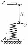 17.(10分)物块A与竖直轻弹簧相连,放在水平地面上,一个物块B由距弹簧上端O点H高处自由落下,落到弹簧上端后将弹簧压缩。某位同学在物块A的正下方放置一个压力传感器,测验物块A对地面的压力,在物块B的正上方放置一个速度传感器,测量物块B下落的速度。在实验中测得:物块A对地面的最小压力为