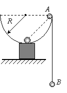 (12分)一半径为R的半圆形竖直圆柱面,用轻质不可伸长的细绳连接的A、B两球,悬挂在圆柱面边缘两侧,A球质量为B球质量的2倍,现将A球从圆柱边缘处由静止释放,如图所示,已知A始终不离开球面,且细绳足够长,若不计一切摩擦.