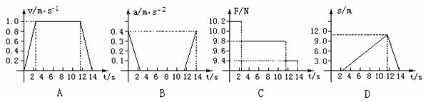 为此同学们在计算机上画出了很多图象,请你根据上表数据和所学知识判断下图(设F为手提包的拉力,g取9.8m/s2)中正确的是 ( )