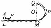 17、如图,LM是粗糙的水平面,动摩擦因素为μ,长为L,MPQ是一半径为R的光滑的半圆,QOM在同一竖直线上,在恒力作用下质量为m的物体A由静止开始运动,当达到M点时立即停止用力,欲使物体A恰好能通过Q点,则力F大小为多少?