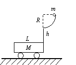 如图所示,在小车的一端高h的支架上固定着一个半径为R的1/4圆弧光滑导轨,一质量为m =0.2kg的物体从圆弧的顶端无摩擦地滑下,离开圆弧后刚好从车的另一端擦过落到水平地面,车的质量M=2kg,车身长L=0.22m,车与水平地面间摩擦不计,图中h =0.20m,重力加速度g=10m/s2,求R.
