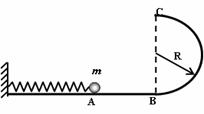 (12分)如图所示,光滑水平面AB与竖直面内的半圆形导轨在B点衔接,导轨半径为R,一个质量为m的静止的小球在A处压缩弹簧,释放小球后,在弹簧弹力的作用下小球获得一向右的速度,当它经过B点进入导轨瞬间对导轨的压力为其重力的7倍,之后向上运动恰好能沿轨道运动到C点,求: