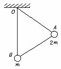 7. 如图所示,长度相同的三根轻杆构成一个正三角形支架,在A处固定质量为2 m的小球,B处固定质量为m的小球,支架悬挂在O点,可绕过O点并与支架所在平面相垂直的固定轴转动.开始时OB与地面相垂直.放手后开始运动,在不计任何阻力的情况下,下列说法正确的是