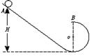 如图所示,一光滑倾斜轨道与一竖直放置的光滑圆轨道相连,圆轨道的半径为R,一质量为m的小球,从高H=3R处的A点由静止自由下滑,当滑至圆轨道最高点B时,小球对轨道的压力F=_______.(3分)
